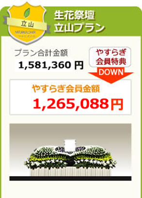 生前にご加入いただき、入会金をお支払いいただくことで、お得なご葬儀を執り行うことができます。 ご葬儀に必要なものが全て揃った充実プランをご用意しております。 ご参列の人数、ご予算等に合わせて、ご希望の祭壇をお選び頂けます。